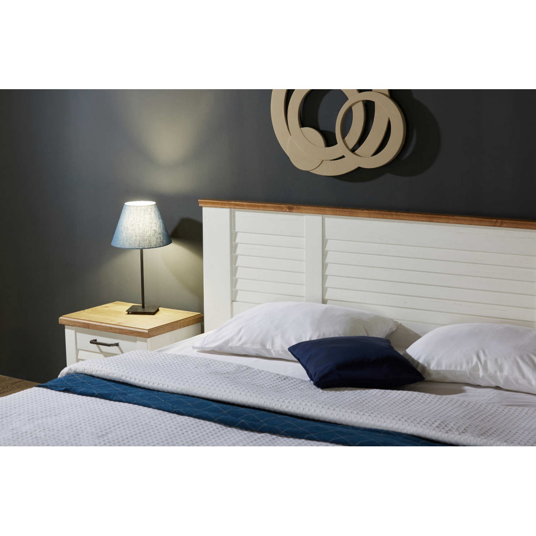 Кровать двуспальная Кантри отличается оригинальным решением не только дизайна, но и оптимальным размерным рядом спальных мест, а также дополнительной комплектацией ящиков для белья с подъемным механимзмом. Изголовье и изножье кровати декорировано вставками «жалюзи». Отделка МДФ планками придает особый шарм дизайну.