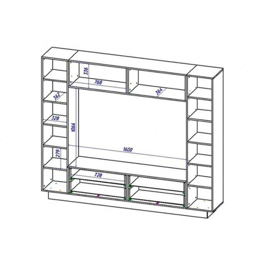 - ниша под телевизор Ш 1600 х В 1061 х Г 352 мм.