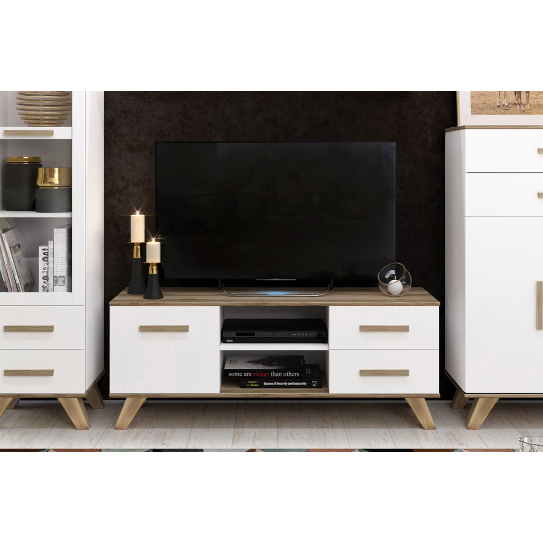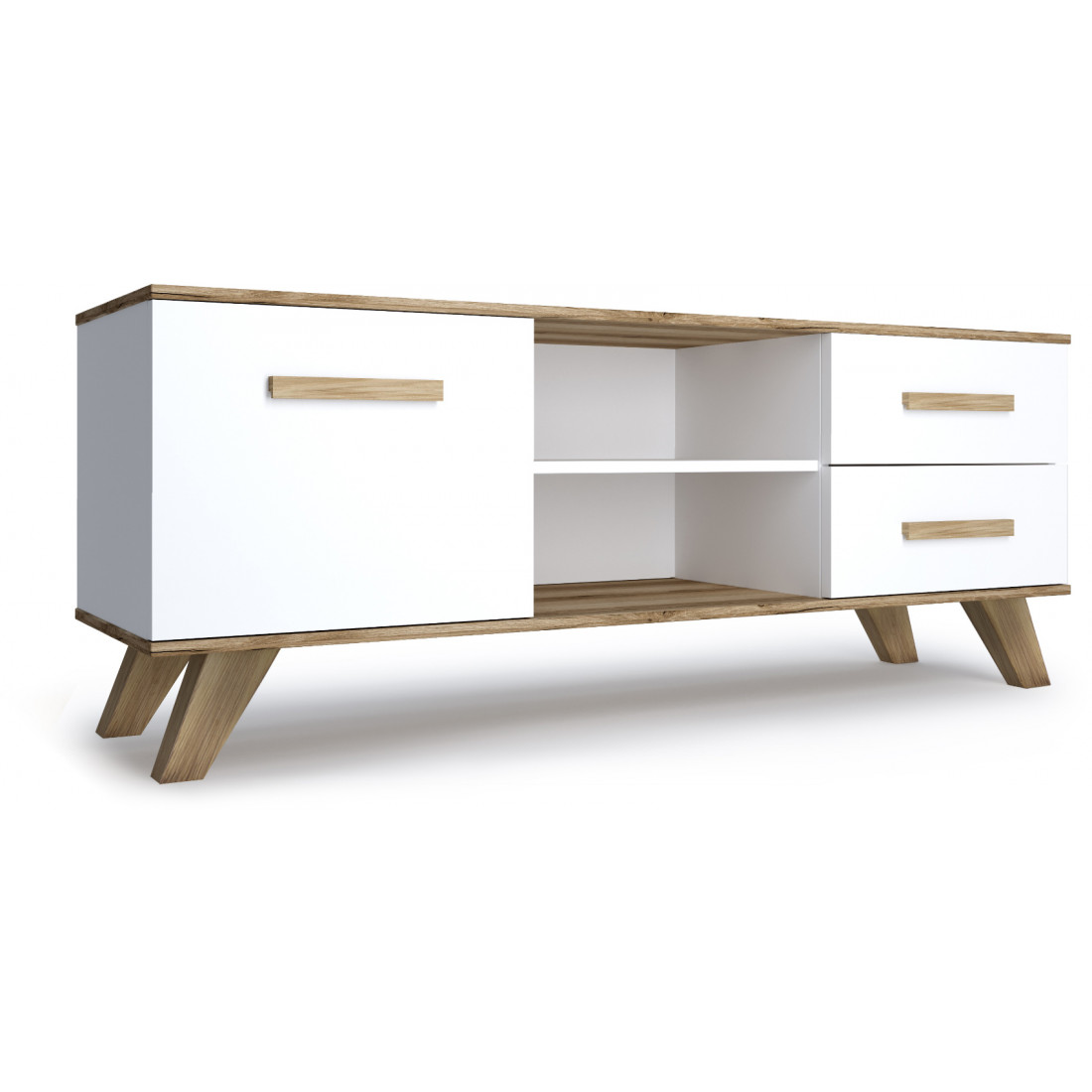 Тумба под ТВ Вега Скандинавия (глянец, белый + дуб каньон)